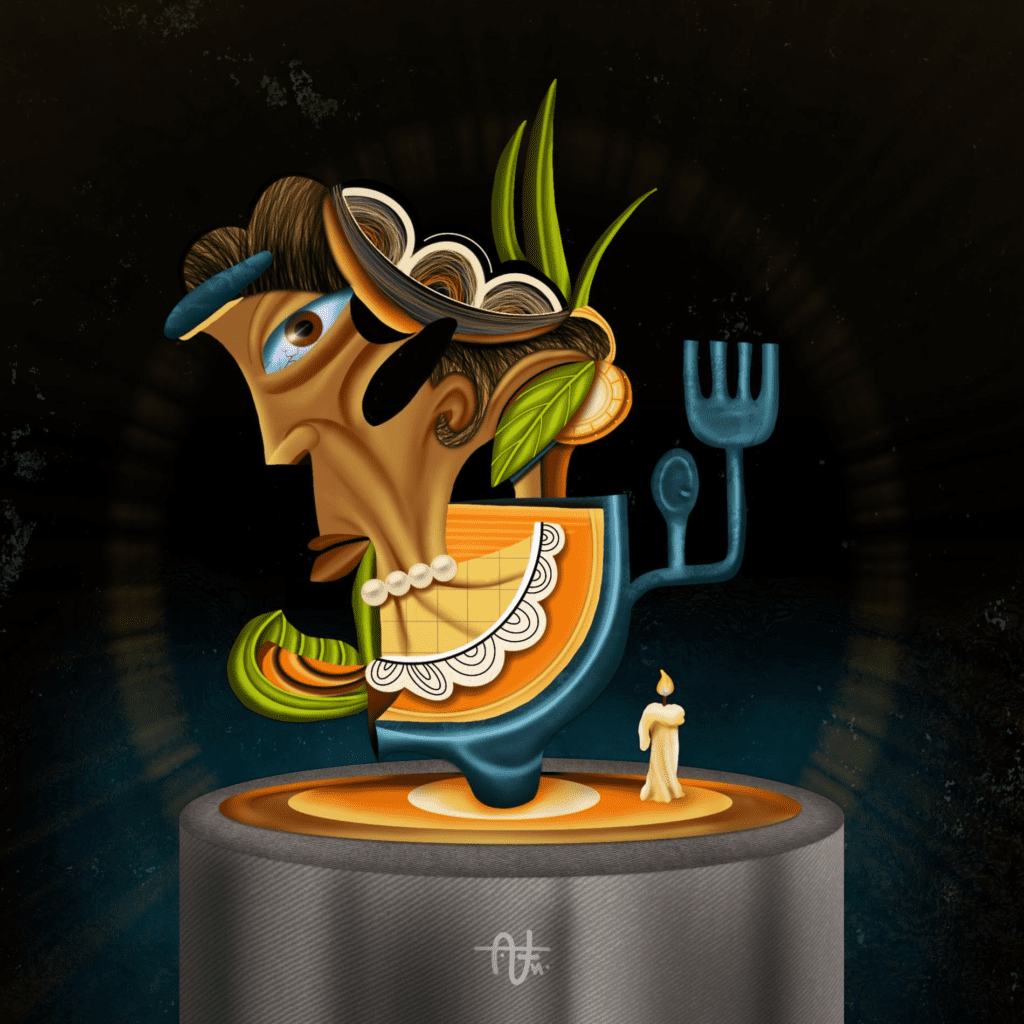 Sir Thiccums • Acrylic on Canvas. 18" x 18" (45.72 x 45.72 cm)